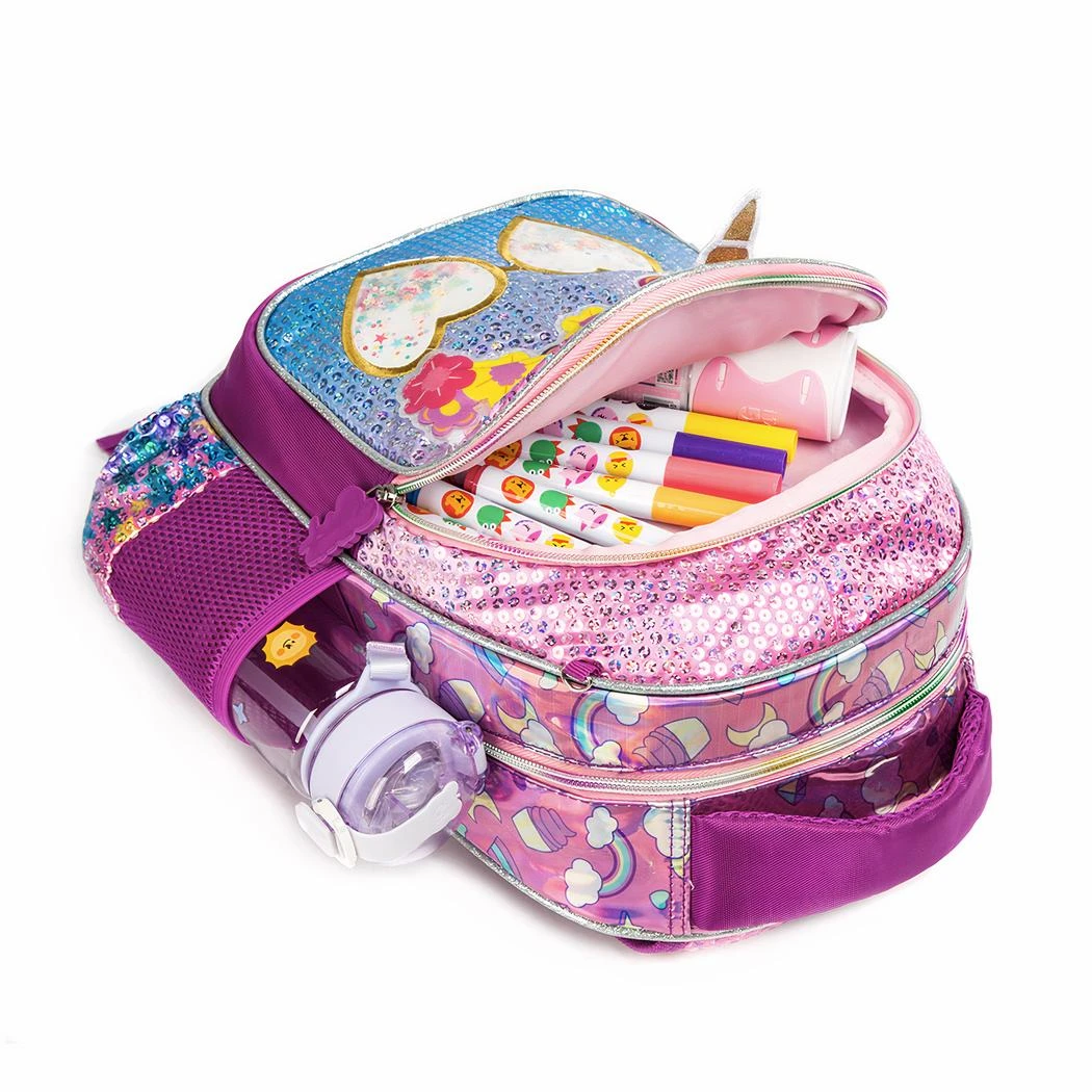 Ce cartable licorne à fleur en paillette pour fille est un produit magique et merveilleux qui ravira les petites filles. Avec ses couleurs pastel, sa forme de licorne et ses fleurs scintillantes, ce cartable est parfait pour la rentrée des classes.