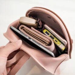 Ce mini sac à dos peut être porté comme un sac à main ou attaché à votre ceinture pour une plus grande commodité. Avec son design élégant et sa couleur rose et marron, ce mini sac à dos est le compagnon idéal pour vos déplacements quotidiens.