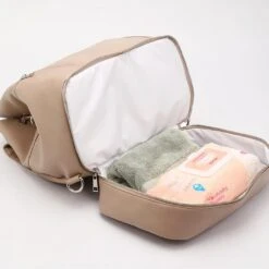Ce sac à langer est peut-être de format compact, mais il vous permettra de porter pas mal d’affaires de votre enfant lors de vos sorties de courte durée. Mettez dans le compartiment du haut les couches, biberons et lait de bébé. Le compartiment inférieur accueillera sa serviette et ses lingettes.