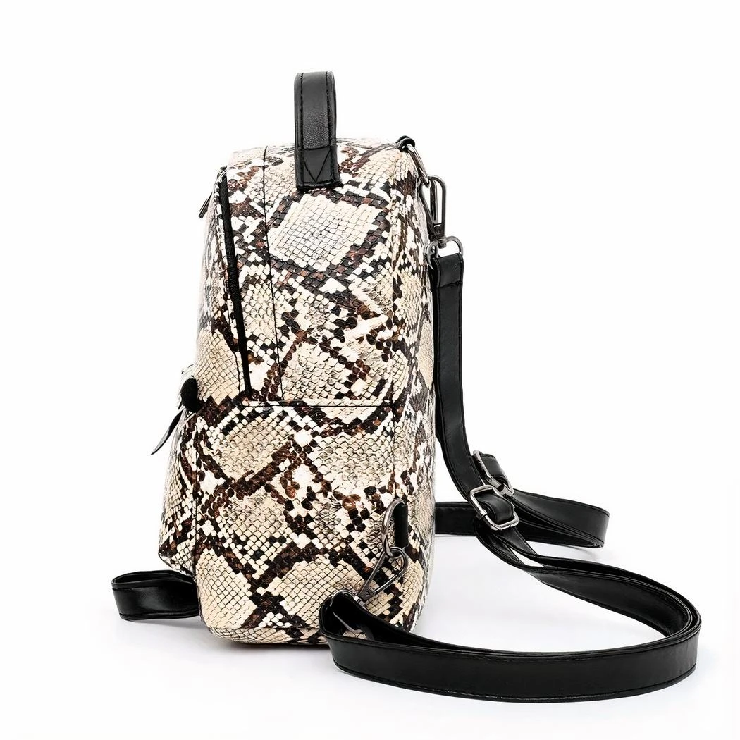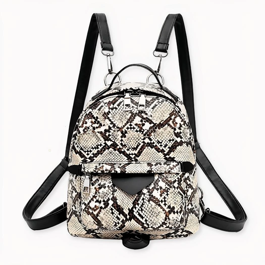 Ce petit sac à dos pour femme est parfait pour toutes les occasions. Il est conçu dans un style élégant et moderne, avec un motif de serpent qui lui donne une touche exotique. La couleur sombre et le tissu résistant en font un accessoire intemporel et fonctionnel.