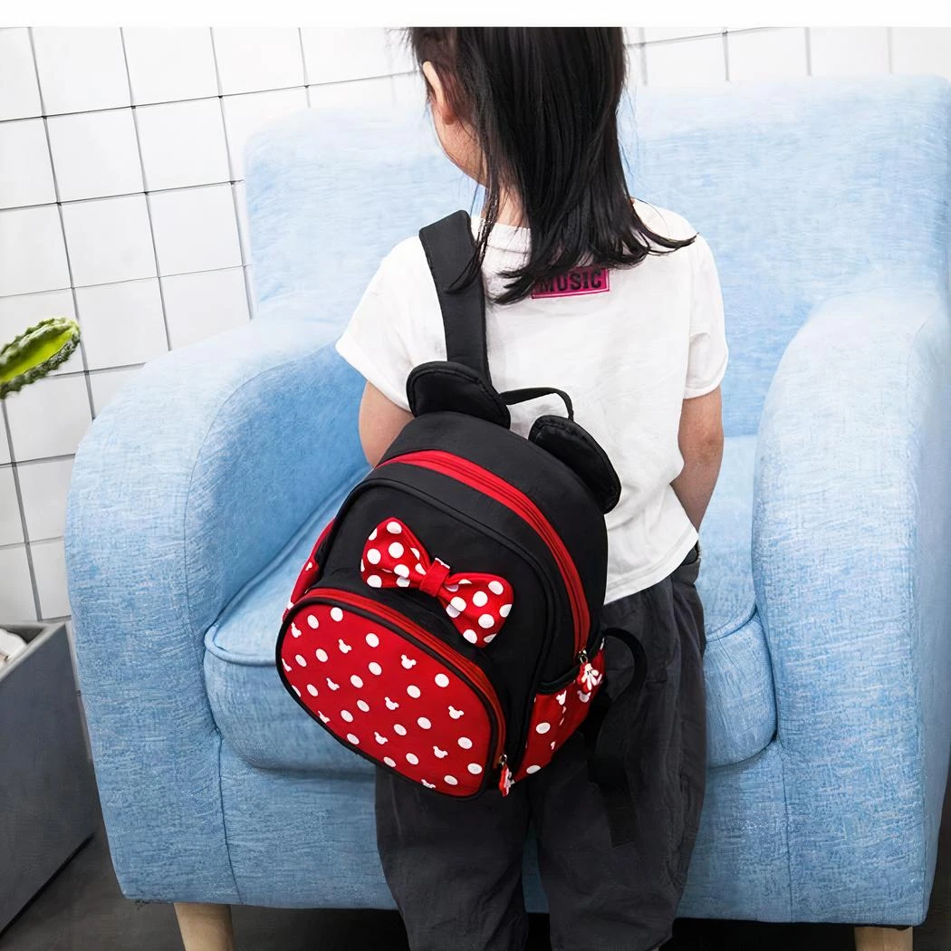 Ce petit sac à dos Minnie est un choix parfait pour les jeunes enfants, alliant charme et élégance. Le design inspiré de Minnie Mouse, avec ses oreilles iconiques et son nœud à pois, apporte une touche de magie Disney à chaque sortie.