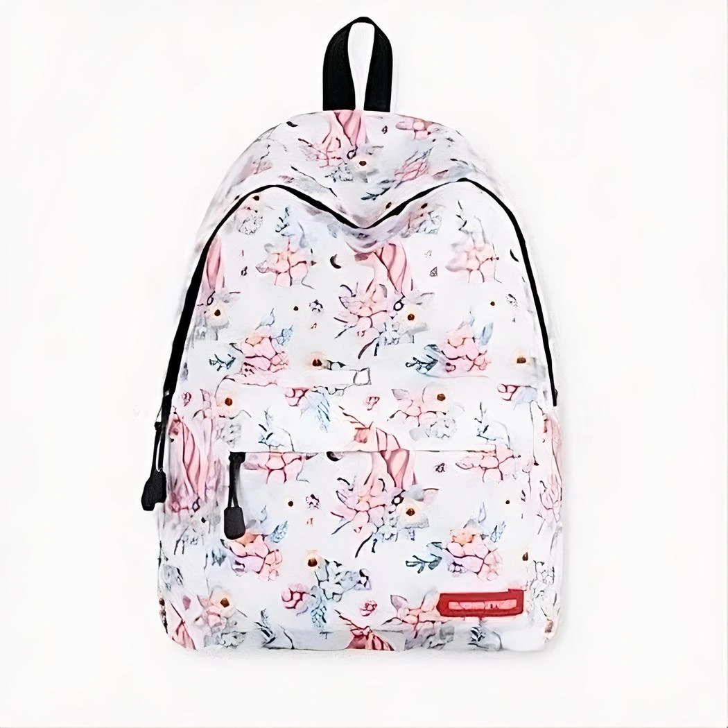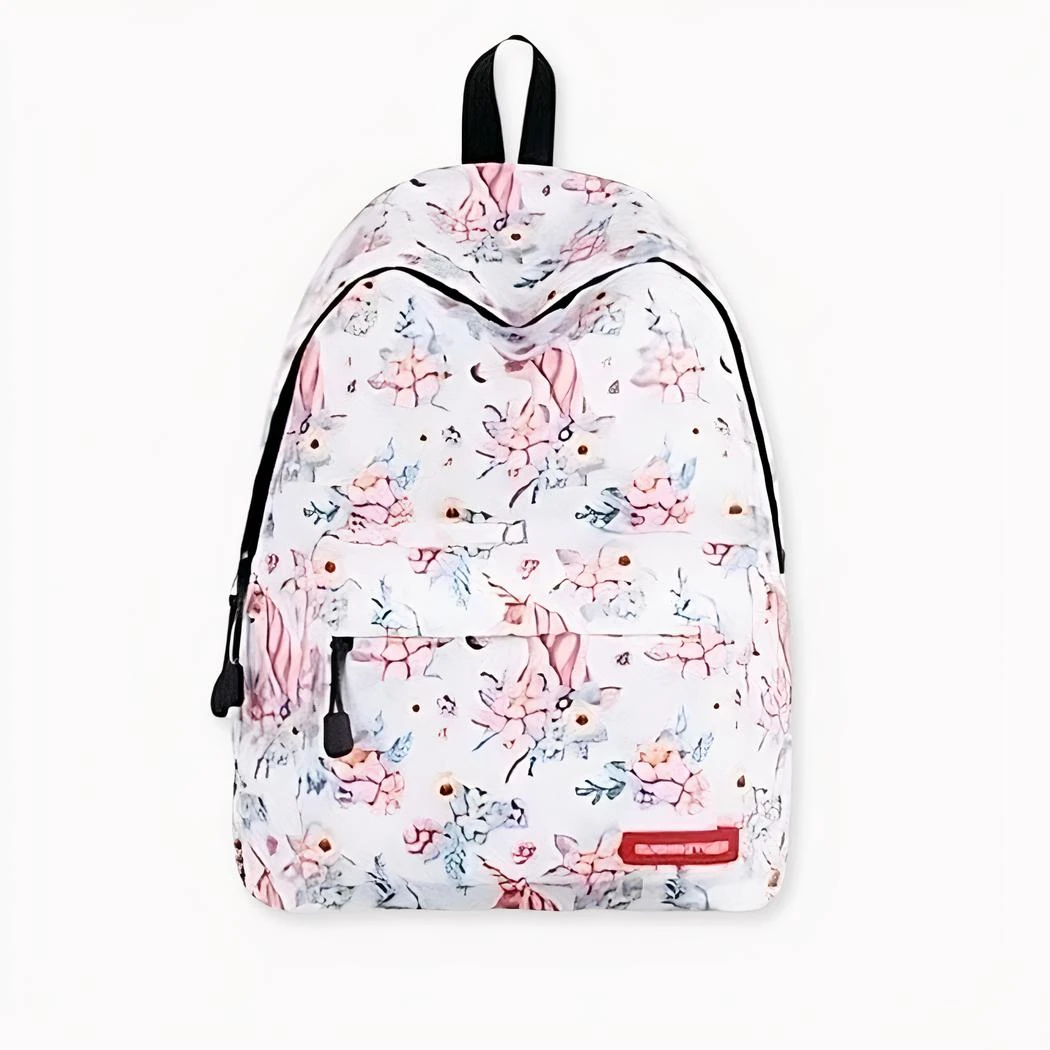 Un sac à dos girly avec une grande capacité. Il est doté d’un grand compartiment principal et d’une petite poche à l’avant. L’arrière du sac est fait dans une matière respirante étudiée pour soulager la pression du dos.