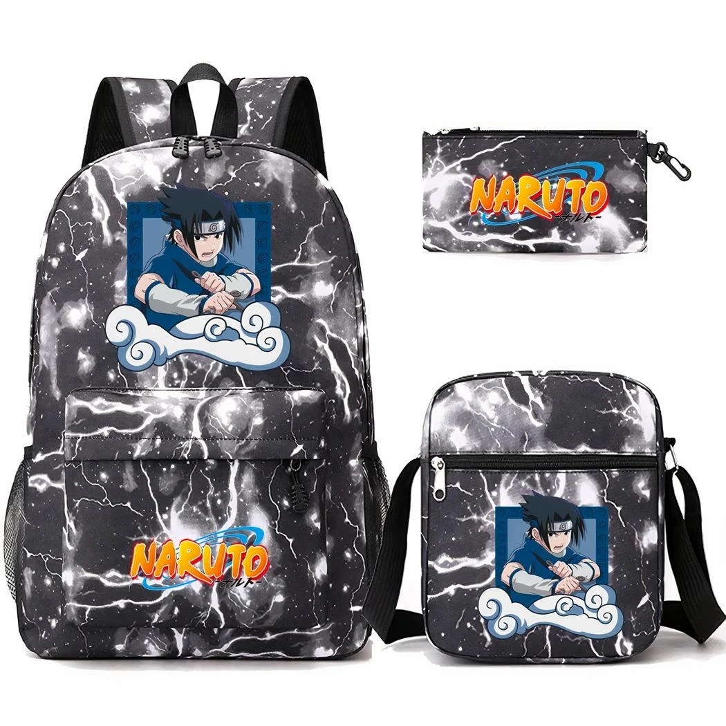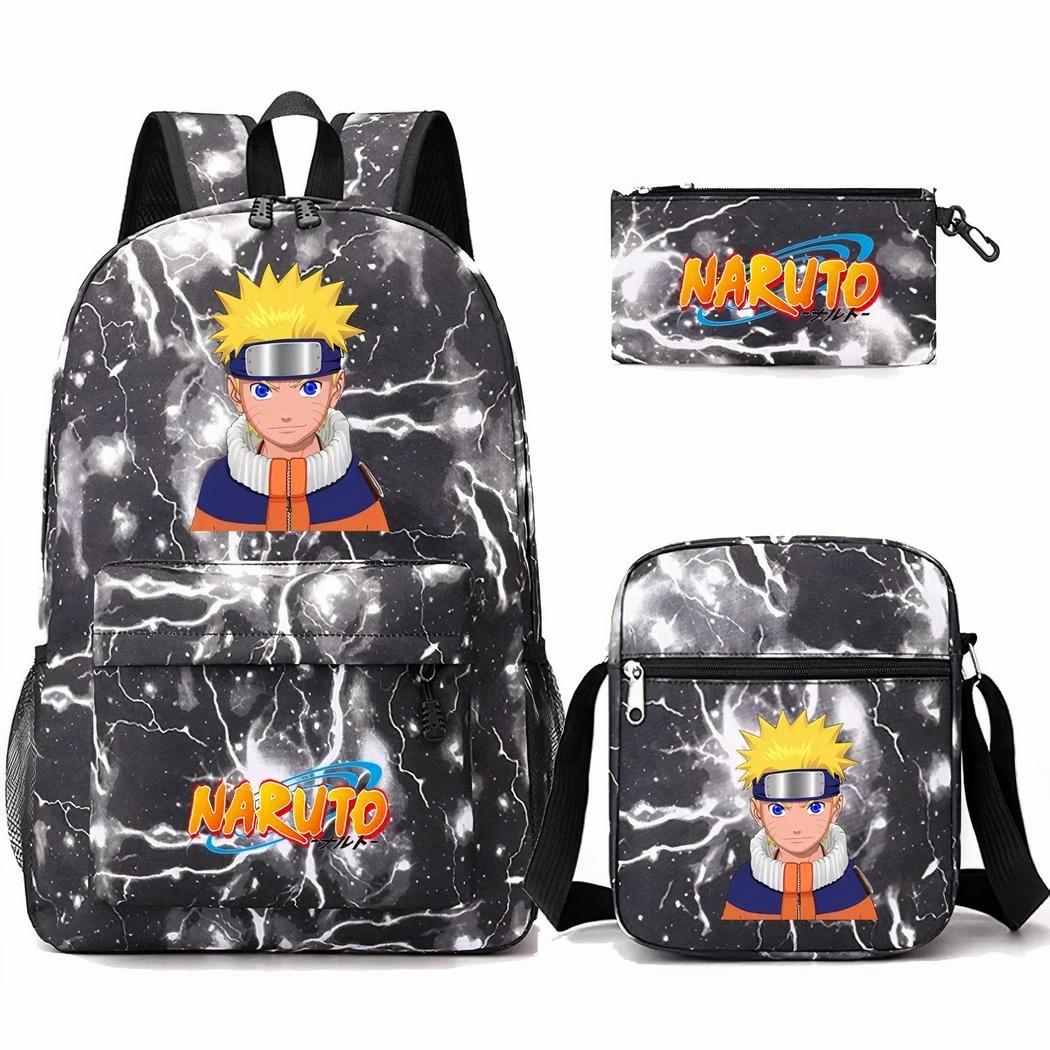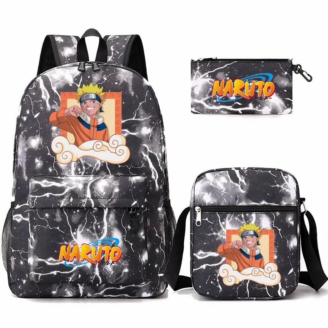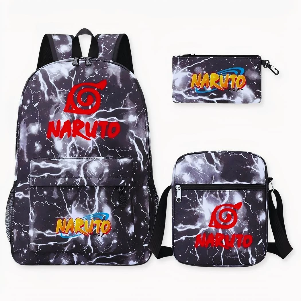 Ce sac à dos à l’effigie de la célèbre série animée est l’accessoire indispensable pour tous les jeunes fans de Naruto. Cet ensemble comprend un sac à dos, un sac bandoulière et d’une trousse. Tous au design d’éclairs frappants.