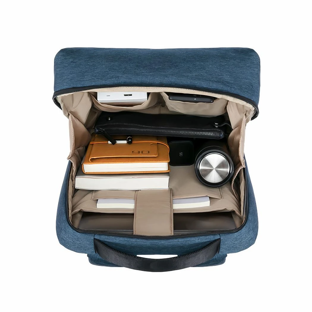 Le compartiment principal est spacieux et permet d’accueillir facilement un ordinateur portable jusqu’à 15 pouces. De plus, il est doté de nombreuses poches intérieures et extérieures pour ranger vos documents, votre téléphone, votre tablette et autres petits objets.