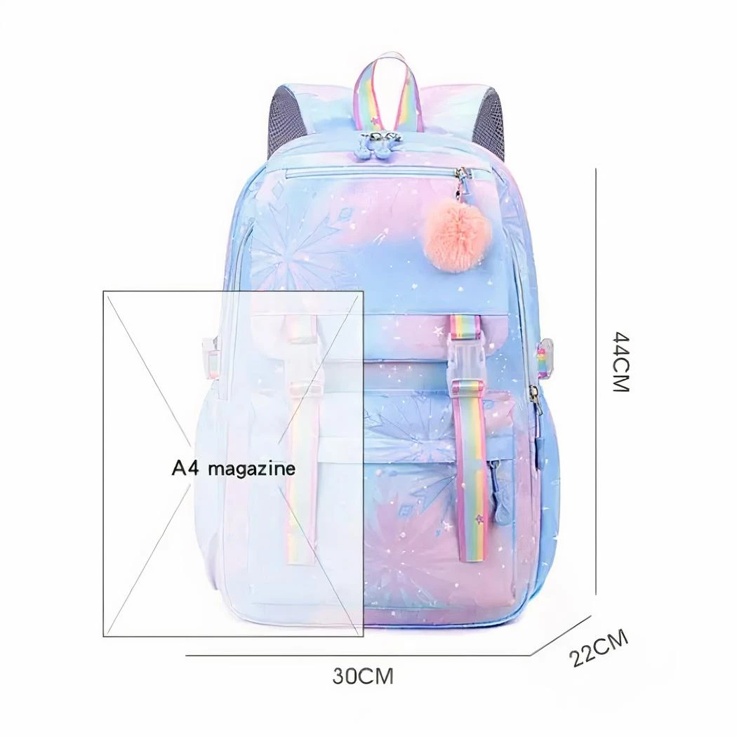 Les couleurs chatoyantes et les motifs féeriques de ce sac à dos feront briller les yeux des enfants. Orné d’un petit pompon rose accroché à la fermeture et doté de lanières aux couleurs arc en ciel, ce sac à dos est une invitation à la magie et à l’émerveillement.