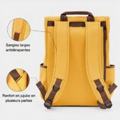 Une fermeture éclair sur l’arrière du sac vous permet d’y glisser votre tablette ou votre ordinateur portable. Ce sac à dos est à la pointe de la modernité. Ses différents coloris s’associent avec vos tenues classiques ou professionnelles pour un look chic. Glisser votre thermos de café sur le côté ou votre bouteille d’eau.
