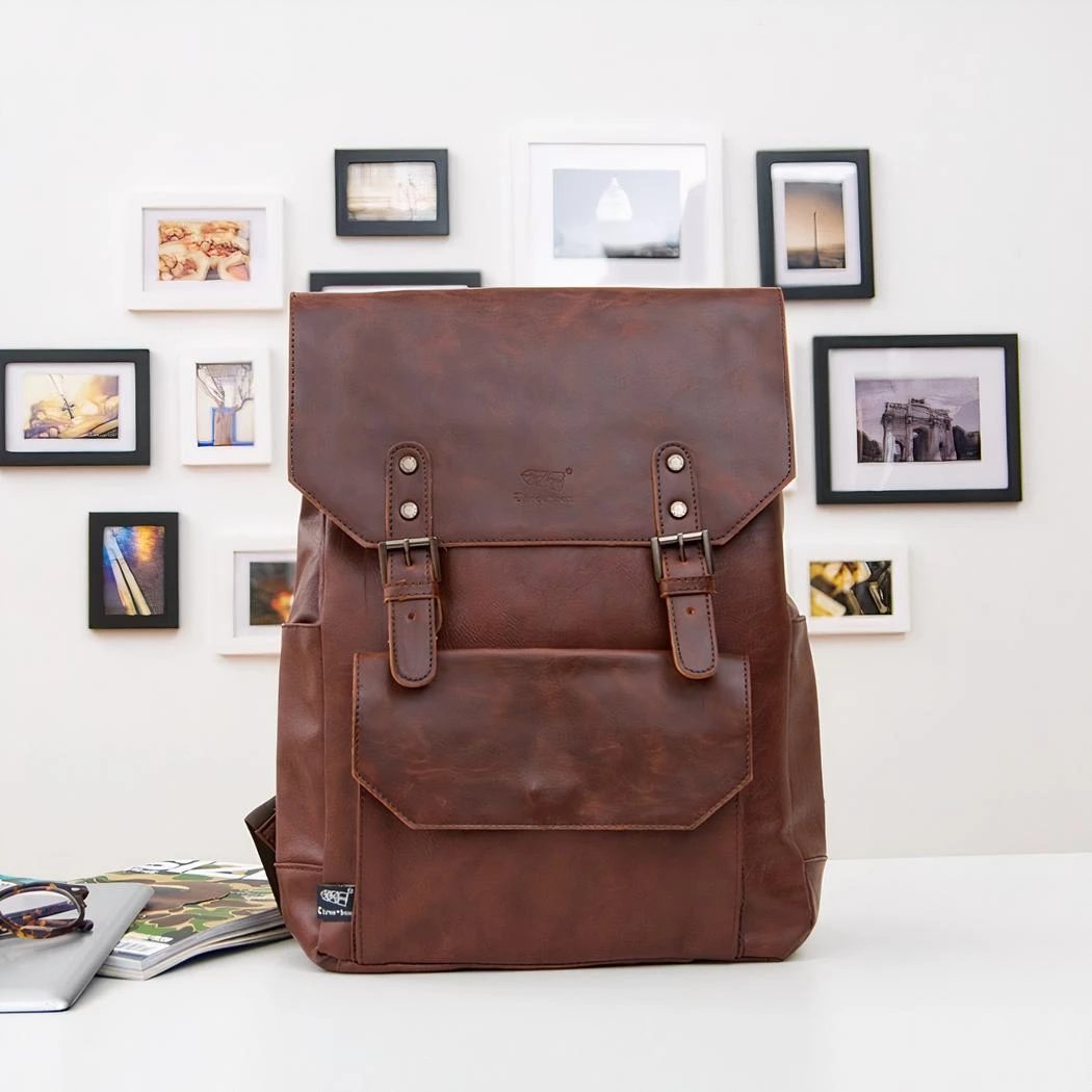 Choisissez un sac qui vous ressemble pour arpenter de nouveaux territoires ! Stylos, carnets, lunettes de soleil, gourdes et autres effets personnels trouveront leur place dans notre cartable vintage en cuir synthétique et ses nombreuses poches intérieures !