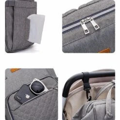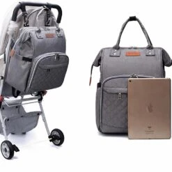 Un sac à dos pour des parents fashion. Ce sac peut également contenir votre ordinateur portable ou tablette. Ranger toutes les affaires de bébés dans différents compartiments, grâce à ses multiples poches. Le sac s’accroche aussi sur la poussette.