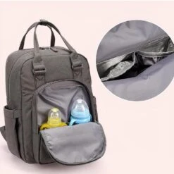 Fabriqué avec des matériaux de qualité, ce sac à couches est robuste et durable. Il est doté d’un compartiment principal spacieux et d’une poche frontale zippée qui offre suffisamment d’espace pour ranger tous vos articles essentiels pour bébé.